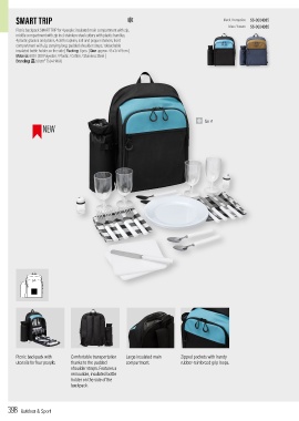 Picnic backpack SMART TRIP for 4 people: insulated main compartment with zip,