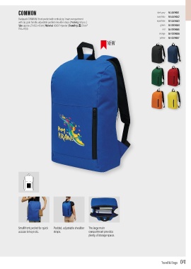 Backpack COMMON: 1 front pocket with vertical zip, 1 main compartment