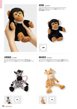 Plush zebra LORENZO with soft fur and heart to print on | Packing: 100 pcs. | Super cuddly plush giraffe MAURICE with a heart to print on | Packing: 200 pcs. |