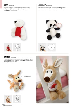 Plush bear LARS with soft fur and scarf to print on (packed separately) | Plush panda ANTHONY: with soft fur and heart to print on | Packing: 100 pcs. |