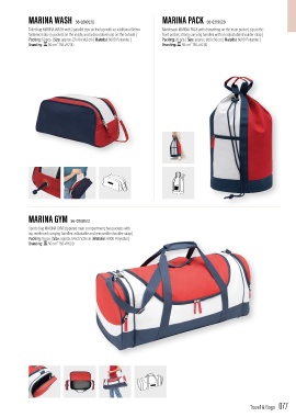Toilet bag MARINA WASH with 2 parallel zips on the top with an additional Velcro Matchsack MARINA PACK with drawstring on the main pocket, zip on the