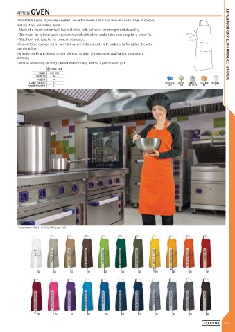 -Hem-stitched contour seams and high-wear reinforcements with bartacks to for added strength APRONS, COOKING HATS AND HOSPITALITY