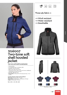 • Contrasting colours on zips, cuffs, hood contour, waistbands,