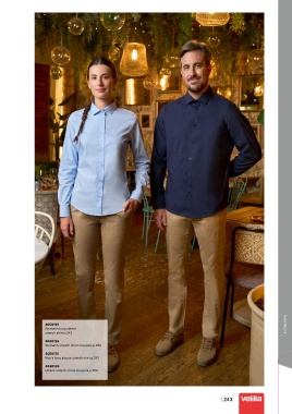 405019S HOSPITALITY Women's long sleeve stretch shirt p.242 403012S Women's stretch chino trousers p.252 405017S Men's long sleeve stretch shirt p.242 403010S Unisex stretch chino trousers p.250 243