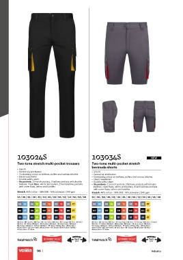 • Elastic waistband • Contrasting colour on bellows, pullers and various stitches