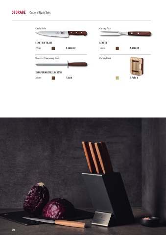 STORAGE Cutlery Block Sets Chef’s Knife Carving Fork LENGTH OF BLADE LENGTH 22 cm 5.2000.22 15 cm 5.2100.15 Domestic Sharpening Steel Cutlery Block SHARPENING STEEL LENGTH 20 cm 7.8210 7.7050.0 102