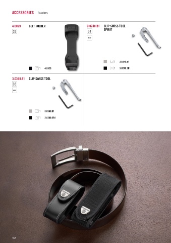 ACCESSORIES Pouches 4.0829 BELT HOLDER 3.0240.B1 CLIP SWISS TOOL 33 34 SPIRIT 1 3.0240.B1 1 4.0829 1 3.0240.3B1 3.0340.B1 CLIP SWISS TOOL 35 1 3.0340.B1 1 3.0340.3B1 132