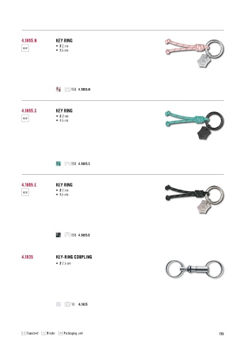 4.1895.N KEY RING • Ø 2 cm • 9.5 cm 150 4.1895.N 4.1895.S KEY RING • Ø 2 cm • 9.5 cm 150 4.1895.S 4.1895.E KEY RING • Ø 2 cm • 9.5 cm 150 4.1895.E 4.1835 KEY-RING COUPLING • Ø 2.5 cm 10 4.1835 Standard Blister Packaging unit 135