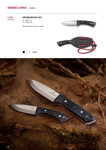 OUTDOOR & SPORTS Outdoor 4.2262 OUTDOOR MASTER S MIC 2 Functions 01. Blade 7 cm 02. Lanyard hole With kydex sheat and micarta handle 6 4.2262 84