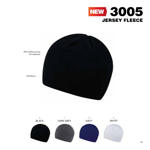 3005 JERSEY FLEECE 95% cotton jersey 5% elastane full-fleece 3 7 14 6 BLACK DARK GREY NAVY WHITE JERSEY FLEECE 95% cotton jersey 3005 5% elastane 107 full-fleece