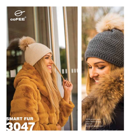 3047 SMART FUR fake fur contrasting pompon 100% acrylic yarn polar fleece lining 7 22 GREY NATURAL SMART FUR 100% acrylic yarn 3047 fake fur 169 polar fleece lining contrasting pompon