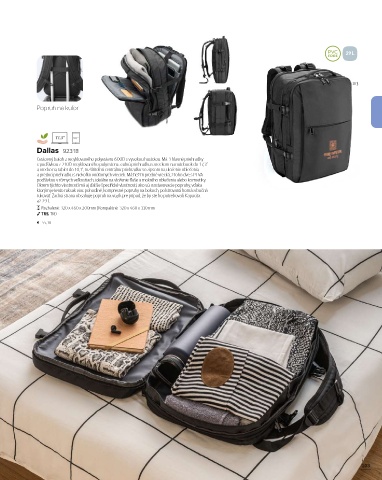 a vrecko na tablet do 10,1”, rozšíriteľnú centrálnu priehradku so zipsom na uloženie oblečenia