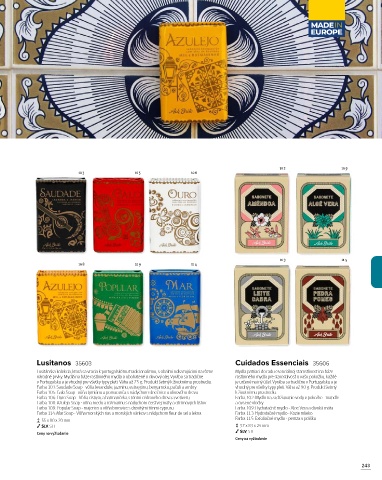 Lusitánska kolekcia, ktorá sa vracia k portugalskému tradicionalizmu, s obalmi odkazujúcimi na rôzne Mydla patriaci do radu esenciálnej starostlivosti na báze