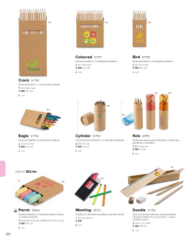 Kartónová škatuľka so 6 farebnými pastelkami. Valcová kartónová krabička s 12 drevenými pastelkami. Kartónová a plastová valcová krabička s 6 drevenými