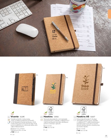 z korku a recikliranog polyesteru (100% rPET)   stranami (70 g/m²) z materiálu s certifikátom FSC    160 hladkých strán (70 g/m²) z materiálu