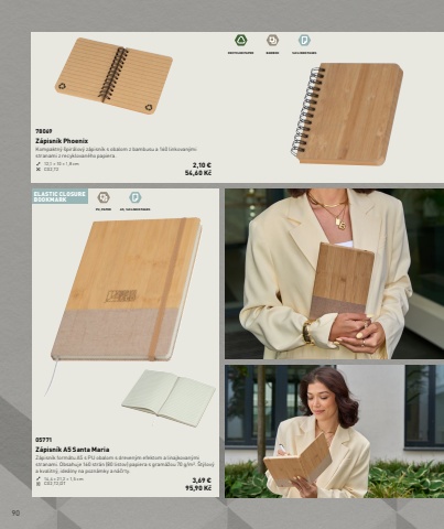 90RECYCLED PAPER BAMBOO 160 LINED PAGESPU, PAPER A5, 160 LINED PAGESELASTIC CLOSUREBOOKMARK78069Z%u00e1pisn%u00edk PhoenixKompaktn%u00fd %u0161pir%u00e1lov%u00fd z%u00e1pisn%u00edk s obalom z bambusu a 160 linkovan%u00fdmi stranami z recyklovan%u00e9ho papiera.12,1 %u00d7 10 %u00d7 1,8 cm CG2,T2 2,10 %u20ac54,60 K%u010d05771Z%u00e1pisn%u00edk A5 Santa MariaZ%u00e1pisn%u00edk form%u00e1tu A5 s PU obalom s dreven%u00fdm efektom a linajkovan%u00fdmi stranami. Obsahuje 160 str%u00e1n (80 listov) papiera s gram%u00e1%u017eou 70 g/m%u00b2. %u0160t%u00fdlov%u00fd a kvalitn%u00fd, ide%u00e1lny na pozn%u00e1mky a n%u00e1%u010drty.14,4 %u00d7 21,2 %u00d7 1,5 cm CG2,T2,DT 3,69 %u20ac95,90 K%u010d