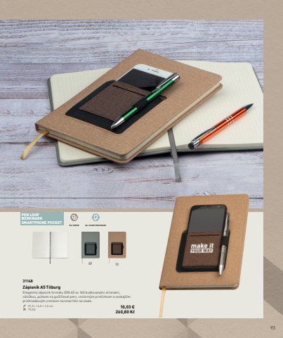 9307 13PEN LOOPBOOKMARKSMARTPHONE POCKET PU, PAPER A5, 160 DOTTED PAGES31148Z%u00e1pisn%u00edk A5 TilburgElegantn%u00fd z%u00e1pisn%u00edk form%u00e1tu DIN A5 so 160 bodkovan%u00fdmi stranami, z%u00e1lo%u017ekou, p%u00fatkom na gu%u013e%u00f4%u010dkov%u00e9 pero, vn%u00fatorn%u00fdm prie%u010dinkom a vonkaj%u0161%u00edm priehradkov%u00fdm vreckom na smartf%u00f3n na obale.21,3 %u00d7 14,5 %u00d7 1,5 cm T3,S2 10,03 %u20ac260,80 K%u010d