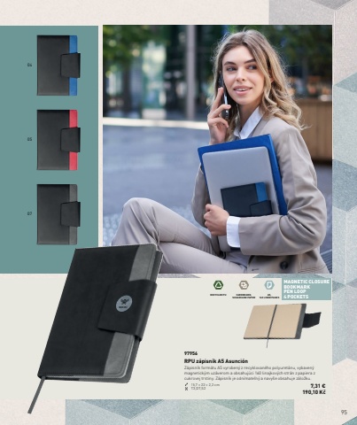 95070504MAGNETIC CLOSUREBOOKMARKPEN LOOP4 POCKETS RECYCLED PU CARDBOARD, SUGARCANE PAPERA5, 160 LINED PAGES97956RPU z%u00e1pisn%u00edk A5 Asunci%u00f3nZ%u00e1pisn%u00edk form%u00e1tu A5 vyroben%u00fd z recyklovan%u00e9ho polyuret%u00e1nu, vybaven%u00fd magnetick%u00fdm uz%u00e1verom a obsahuj%u00faci 160 linajkov%u00fdch str%u00e1n z papiera z cukrovej trstiny. Z%u00e1pisn%u00edk je odn%u00edmate%u013en%u00fd a navy%u0161e obsahuje z%u00e1lo%u017eku.15,7 %u00d7 22 %u00d7 2,2 cm T3,DT,S2 7,31 %u20ac190,10 K%u010d