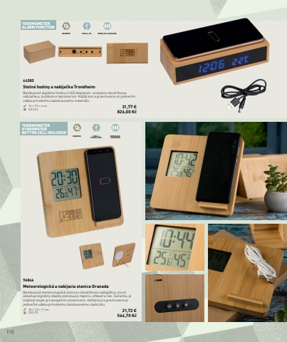110BAMBOO USB-A, MICRO-USBWIRELESSCHARGINGBAMBOO USB-A, DC WIRELES CHARGINGTHERMOMETERALARM FUNCTIONTHERMOMETERHYGROMETERBUTTON CELL INCLUDED64585Stoln%u00e9 hodiny a nab%u00edja%u010dka TrondheimBambusov%u00e9 digit%u00e1lne hodiny s LED displejom, vstavanou bezdr%u00f4tovou nab%u00edja%u010dkou, bud%u00edkom a teplomerom. Ka%u017ed%u00fd kus a grav%u00edrovanie s%u00fa jedine%u010dn%u00e9 v%u010faka pr%u00edrodn%u00e9mu bambusov%u00e9mu materi%u00e1lu.16 %u00d7 7,5 %u00d7 4 cm CG3,T3 31,77 %u20ac826,00 K%u010d96866Meteorologick%u00e1 a nab%u00edjacia stanica GranadaBambusov%u00e1 meteorologick%u00e1 stanica s bezdr%u00f4tovou nab%u00edja%u010dkou, ktor%u00e1 obsahuje digit%u00e1lny displej zobrazuj%u00faci teplotu, vlhkos%u0165 a %u010das. S%u00fa%u010das%u0165ou je stabiln%u00fd stojan pre bezpe%u010dn%u00e9 umiestnenie. Ka%u017ed%u00fd kus a grav%u00edrovanie je jedine%u010dn%u00e9 v%u010faka pr%u00edrodn%u00e9mu bambusov%u00e9mu materi%u00e1lu.18 %u00d7 1,8 %u00d7 17 cm CG3,T3 21,72 %u20ac564,70 K%u010d