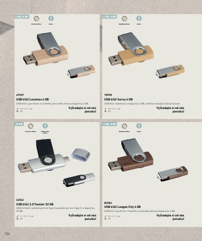 134MAPLE, METAL USB-A BAMBOO, METAL USB-APLASTIC, METAL MICRO-USB, WALNUT, METAL USB-AUSB-A4 GB, 8 GB 4 GB, 8 GB32 GB 4 GB, 8 GB34742USB k%u013e%u00fa%u010d 3.0 Twister 32 GBUSB 3.0 k%u013e%u00fa%u010d s jedn%u00fdm portom Type A a jedn%u00fdm portom Type C, s kapacitou 32 GB.7 %u00d7 1,9 %u00d7 1,1 cm G2Vy%u017eiadajte si od n%u00e1s ponuku!15998USB k%u013e%u00fa%u010d Suru%u00e7 4 GBUSB k%u013e%u00fa%u010d z bambusu s kapacitou 4 GB, rota%u010dn%u00e1 vonkaj%u0161ia %u010das%u0165 je kovov%u00e1.5,7 %u00d7 2 %u00d7 1 cm G2Vy%u017eiadajte si od n%u00e1s ponuku!82284USB k%u013e%u00fa%u010d League City 4 GBUSB k%u013e%u00fa%u010d s puzdrom z tmav%u00e9ho orechov%u00e9ho dreva a kapacitou 4 GB.5,7 %u00d7 2 %u00d7 1 cm G2Vy%u017eiadajte si od n%u00e1s ponuku!47937USB k%u013e%u00fa%u010d Lessines 4 GBUSB k%u013e%u00fa%u010d s povrchom zo svetl%u00e9ho javorov%u00e9ho dreva a kapacitou 4 GB.5,7 %u00d7 2 %u00d7 1 cm G2Vy%u017eiadajte si od n%u00e1s ponuku!