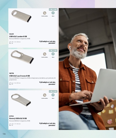 136PLASTIC, METAL USB-APLASTIC, METAL USB-APLASTIC, METAL USB-A4 GB, 8 GB4 GB, 8 GB4 GB, 8 GB01733Kovov%u00fd USB k%u013e%u00fa%u010d 8 GBKovov%u00fd USB k%u013e%u00fa%u010d s kapacitou 8 GB.4,5 %u00d7 1,7 %u00d7 0,4 cm G2Vy%u017eiadajte si od n%u00e1s ponuku!98778USB k%u013e%u00fa%u010d Las Cruces 8 GBKovov%u00fd USB k%u013e%u00fa%u010d s kapacitou 8 GB a integrovanou karab%u00ednou pre jednoduch%u00e9 pripevnenie.5,1 %u00d7 1,6 %u00d7 0,5 cm G2Vy%u017eiadajte si od n%u00e1s ponuku!26422USB k%u013e%u00fa%u010d Landen 8 GBKovov%u00fd USB k%u013e%u00fa%u010d s kapacitou 8 GB.3,9 %u00d7 1,2 %u00d7 0,5 cm G2Vy%u017eiadajte si od n%u00e1s ponuku!