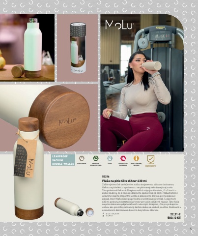5LEAKPROOFVACUUMDOUBLE-WALLED ACACIA WOOD RECYCLED STAINLESS STEEL630 ML HIGH QUALITY MATERIALSKEEP 14H WARM/16H COLD 2 YEARWARRANTY55216F%u013ea%u0161a na pitie C%u00f4te d%u2019Azur 630 mlZa%u017eite v%u00fdnimo%u010dn%u00e9 osvie%u017eenie s na%u0161ou dvojstennou v%u00e1kuovo izolovanou f%u013ea%u0161ou na pitie MoLu vyrobenou z recyklovanej nehrdzavej%u00facej ocele. T%u00e1to pr%u00e9miov%u00e1 f%u013ea%u0161a udr%u017e%u00ed teplotu va%u0161ich n%u00e1pojov dlhodobo, %u010di u%u017e hor%u00facu alebo studen%u00fa, %u010do z nej rob%u00ed ide%u00e1lneho spolo%u010dn%u00edka na cesty. Vzduchotesn%u00e9 uzavretie dop%u013a%u0148a elegantn%u00e9 vie%u010dko z ak%u00e1ciov%u00e9ho dreva a pevn%u00fd ak%u00e1ciov%u00fd z%u00e1klad, ktor%u00e9 f%u013ea%u0161i dod%u00e1vaj%u00fa pr%u00edrodn%u00fd a sofistikovan%u00fd vzh%u013ead. S objemom 630 ml poskytuje dostato%u010dn%u00fd priestor pre va%u0161e ob%u013e%u00faben%u00e9 n%u00e1poje. T%u00e1to f%u013ea%u0161a na pitie dokonale sp%u00e1ja funk%u010dnos%u0165 s vkusn%u00fdm dizajnom, %u010d%u00edm je vynikaj%u00facou vo%u013ebou ako prest%u00ed%u017eny reklamn%u00fd dar%u010dek alebo na osobn%u00e9 pou%u017eitie. Dod%u00e1van%u00e1 v exkluz%u00edvnom dar%u010dekovom balen%u00ed s dvojro%u010dnou z%u00e1rukou.%u00f8 7,4 %u00d7 25,6 cm G3,RS2 22,31 %u20ac580,10 K%u010d