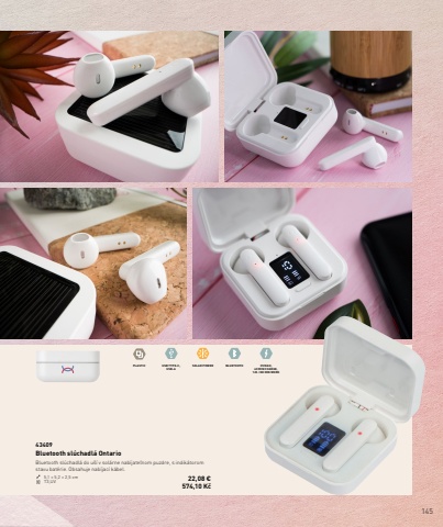 145PLASTIC USB TYPE-C, USB-ASOLAR POWER BLUETOOTH 35 MAH, 60 MIN CHARGE, 120-180 MIN WORK43409Bluetooth sl%u00fachadl%u00e1 OntarioBluetooth sl%u00fachadl%u00e1 do u%u0161%u00ed v sol%u00e1rne nab%u00edjate%u013enom puzdre, s indik%u00e1torom stavu bat%u00e9rie. Obsahuje nab%u00edjac%u00ed k%u00e1bel.5,1 %u00d7 5,2 %u00d7 2,5 cm T3,UV 22,08 %u20ac 574,10 K%u010d