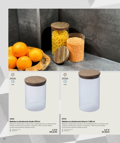 160BOROSILICATEGLASS, BAMBOO700 MLBOROSILICATEGLASS, BAMBOO1 000 ML76530N%u00e1doba na skladovanie Osaka 700 mlN%u00e1doba na skladovanie vyroben%u00e1 z borosilik%u00e1tov%u00e9ho skla, so bambusov%u00fdm vie%u010dkom a silik%u00f3nov%u00fdm tesnen%u00edm. S kapacitou 700 ml je t%u00e1to n%u00e1doba nevyhnutn%u00fdm doplnkom ka%u017edej kuchyne.%u00f8 10,2 %u00d7 14,2 cm CG2,M,T3 6,13 %u20ac159,40 K%u010d09794N%u00e1doba na skladovanie Ontario 1,000 mlN%u00e1doba na skladovanie vyroben%u00e1 z borosilik%u00e1tov%u00e9ho skla, so bambusov%u00fdm vie%u010dkom a silik%u00f3nov%u00fdm tesnen%u00edm. S kapacitou 1 000 ml je t%u00e1to n%u00e1doba nevyhnutn%u00fdm doplnkom ka%u017edej kuchyne.%u00f8 10,2 %u00d7 17,2 cm CG2,M,T3 6,21 %u20ac161,50 K%u010d