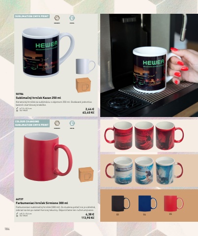 18403 04 05SUBLIMATION CMYK PRINT COLOUR CHANGINGSUBLIMATION CMYK PRINT CERAMIC 300 MLCERAMIC 250 ML66737Farbumeniaci hrn%u010dek Sirmione 300 mlFarbumeniaci sublima%u010dn%u00fd hrn%u010dek (300 ml). Za studena potla%u010d nie je vidite%u013en%u00e1, zobraz%u00ed sa len po naliat%u00ed hor%u00facej tekutiny. Odpor%u00fa%u010dame len ru%u010dn%u00e9 um%u00fdvanie.%u00f8 8,2 %u00d7 9,6 cm SU-MUG 4,38 %u20ac 113,90 K%u010d50786Sublima%u010dn%u00fd hrn%u010dek Kazan 250 mlKeramick%u00fd hrn%u010dek na sublim%u00e1ciu s objemom 250 ml. Dod%u00e1van%u00e9 jednotlivo balen%u00e9 v kart%u00f3novej krabi%u010dke.%u00f8 7,5 %u00d7 8,5 cm SU-MUG 2,44 %u20ac 63,40 K%u010d