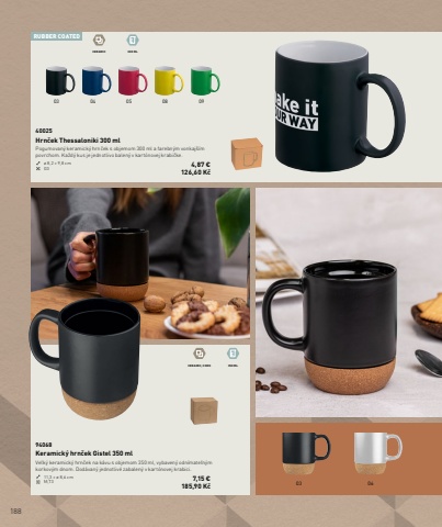 18803 0603 04 05 08 09RUBBER COATEDCERAMIC 300 MLCERAMIC, CORK 350 ML94068Keramick%u00fd hrn%u010dek Gistel 350 mlVe%u013ek%u00fd keramick%u00fd hrn%u010dek na k%u00e1vu s objemom 350 ml, vybaven%u00fd odn%u00edmate%u013en%u00fdm korkov%u00fdm dnom. Dod%u00e1van%u00fd jednotliv%u00e9 zabalen%u00fd v kart%u00f3novej krabici.11,3 %u00d7 %u00f8 8,6 cm M,T3 7,15 %u20ac185,90 K%u010d40025Hrn%u010dek Thessaloniki 300 mlPogumovan%u00fd keramick%u00fd hrn%u010dek s objemom 300 ml a farebn%u00fdm vonkaj%u0161%u00edm povrchom. Ka%u017ed%u00fd kus je jednotlivo balen%u00fd v kart%u00f3novej krabi%u010dke.%u00f8 8,2 %u00d7 9,8 cm G3 4,87 %u20ac 126,60 K%u010d