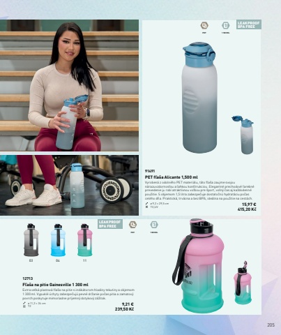 20503 04 11LEAKPROOFBPA FREELEAKPROOFBPA FREEPET 1300 MLPET 1 500 ML12713F%u013ea%u0161a na pitie Gainesville 1 300 mlExtra ve%u013ek%u00e1 plastov%u00e1 f%u013ea%u0161a na pitie s indik%u00e1torom hladiny tekutiny a objemom 1 300 ml. Vypukl%u00e9 %u00fachyty zabezpe%u010duj%u00fa pevn%u00e9 dr%u017eanie po%u010das pitia a zamatov%u00fd povrch poskytuje mimoriadne pr%u00edjemn%u00fd dotykov%u00fd z%u00e1%u017eitok.%u00f8 11,2 %u00d7 24 cm T2 9,21 %u20ac239,50 K%u010d91491PET f%u013ea%u0161a Alicante 1,500 mlVyroben%u00e1 z odoln%u00e9ho PET materi%u00e1lu, t%u00e1to f%u013ea%u0161a zaujme svojou n%u00e1razuvzdornos%u0165ou a %u013eahkou kon%u0161trukciou. Elegantn%u00e9 prechodov%u00e9 farebn%u00e9 prevedenie ju rob%u00ed atrakt%u00edvnou vo%u013ebou pre %u0161port, vo%u013en%u00fd %u010das aj ka%u017edodenn%u00e9 pou%u017eitie. S objemom 1,5 litra zabezpe%u010duje dostato%u010dn%u00fa hydrat%u00e1ciu po%u010das cel%u00e9ho d%u0148a. Praktick%u00e1, trv%u00e1cna a bez BPA, ide%u00e1lna na pou%u017eitie na cest%u00e1ch.%u00f8 9,2 %u00d7 29,5 cm T3,UV 15,97 %u20ac415,20 K%u010d