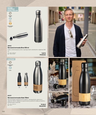 22003 07VACUUMLEAKPROOF DOUBLE-WALLEDSTAINLESSSTEEL550 MLKEEP 24H WARM/ 36H COLDLEAKPROOF STAINLESS STEEL, BAMBOO750 ML20923Nerezov%u00e1 termoska Bree 550 mlF%u013ea%u0161a z nehrdzavej%u00facej ocele s nepriepustn%u00fdm uzatv%u00e1ran%u00edm a objemom 550 ml.%u00f8 6,7 %u00d7 27,2 cm G2,M,T3,RS2 7,69 %u20ac199,90 K%u010d07277Nerezov%u00e1 termoska Kobe 750mlNerezov%u00e1 f%u013ea%u0161a s bambusov%u00fdm kr%u00fa%u017ekom, nepriepustn%u00fdm uz%u00e1verom a objemom 750 ml. Ka%u017ed%u00fd kus a grav%u00edrovanie je jedine%u010dn%u00e9 v%u010faka pr%u00edrodn%u00e9mu bambusov%u00e9mu materi%u00e1lu.%u00f8 7,1 %u00d7 25,8 cm G3,T3 12,56 %u20ac326,60 K%u010d