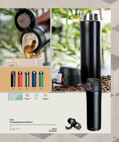 22303 05 07 44 99STAINLESS STEEL, PLASTIC500 ML KEEP 24H WARM/36H COLDDOUBLE-WALLEDLEAKPROOF BPA FREEVACUUM74044Termoska Bucharest 500 mlDvojstenn%u00e1 v%u00e1kuovo izolovan%u00e1 termo f%u013ea%u0161a z nerezovej ocele s objemom 500 ml.%u00f8 6,2 %u00d7 23,5 cm G2,T3 9,69 %u20ac251,90 K%u010d