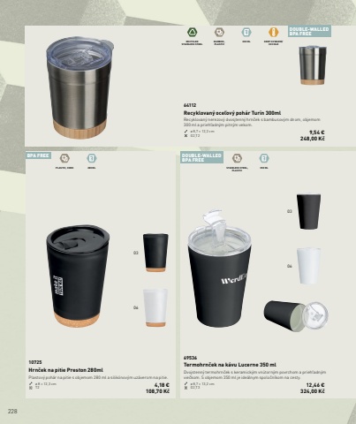 22803060603BPA FREERECYCLEDSTAINLESS STEELBAMBOO, PLASTIC300 ML KEEP 2H WARM/ 3H COLD STAINLESS STEEL, PLASTICPLASTIC, CORK 280 ML 350 MLDOUBLE-WALLEDBPA FREEDOUBLE-WALLEDBPA FREE69536Termohrn%u010dek na k%u00e1vu Lucerne 350 mlDvojstenn%u00fd termohrn%u010dek s keramick%u00fdm vn%u00fatorn%u00fdm povrchom a prieh%u013eadn%u00fdm vie%u010dkom. S objemom 350 ml je ide%u00e1lnym spolo%u010dn%u00edkom na cesty.%u00f8 8,7 %u00d7 13,2 cm G2,T3 12,46 %u20ac324,00 K%u010d10725Hrn%u010dek na pitie Preston 280mlPlastov%u00fd poh%u00e1r na pitie s objemom 280 ml a silik%u00f3nov%u00fdm uz%u00e1verom na pitie.%u00f8 8 %u00d7 12,3 cm T2 4,18 %u20ac108,70 K%u010d64112Recyklovan%u00fd oce%u013eov%u00fd poh%u00e1r Tur%u00edn 300mlRecyklovan%u00fd nerezov%u00fd dvosjtenn%u00fd hrn%u010dek s bambusov%u00fdm dnom, objemom 300 ml a prieh%u013eadn%u00fdm pitn%u00fdm vekom.%u00f8 8,7 %u00d7 12,2 cm G2,T2 9,54 %u20ac248,00 K%u010d