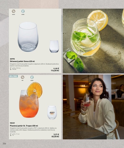234GLASS 420 MLBPA FREEPET 450 ML30970Sklenen%u00fd poh%u00e1r Siena 420 mlElegantne navrhnut%u00fd poh%u00e1r na pitie s objemom 420 ml. Dod%u00e1van%u00e9 jednotlivo balen%u00e9 v kart%u00f3novej krabi%u010dke.%u00f8 7,5 %u00d7 10,5 cm CG3,M 4,46 %u20ac 116,00 K%u010d95539Plastov%u00fd poh%u00e1r St. Tropez 450 mlElegantne navrhnut%u00fd poh%u00e1r na pitie z PET s objemom 450 ml. Ide%u00e1lny na koktaily alebo dlh%u00e9 n%u00e1poje. Dod%u00e1van%u00fd jednotlivo zabalen%u00fd v kart%u00f3novej krabi%u010dke.%u00f8 7,5 %u00d7 11 cm T3 3,21 %u20ac83,50 K%u010d