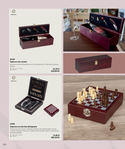 238WOOD, METALWOOD, METAL89350Sada na v%u00edno JesoloExkluz%u00edvna dreven%u00e1 kazeta na v%u00edno s pr%u00edslu%u0161enstvom. F%u013ea%u0161a nie je s%u00fa%u010das%u0165ou balenia.36 %u00d7 11,1 %u00d7 12,2 cm CG3,T3 24,26 %u20ac 630,80 K%u010d60558S%u00faprava na v%u00edno San GimignanoTento luxusn%u00fd set na v%u00edno obsahuje %u010da%u0161n%u00edcky n%u00f4%u017e, lapa%u010d kvapiek, kovov%u00fd vrchn%u00e1k, teplomer. Dokonca si m%u00f4%u017eete zahra%u0165 aj %u0161ach. Balen%u00e9 v exkluz%u00edvnej drevenej krabi%u010dke.15 %u00d7 17,5 %u00d7 4,7 cm CG3,T3 14,82 %u20ac385,30 K%u010d