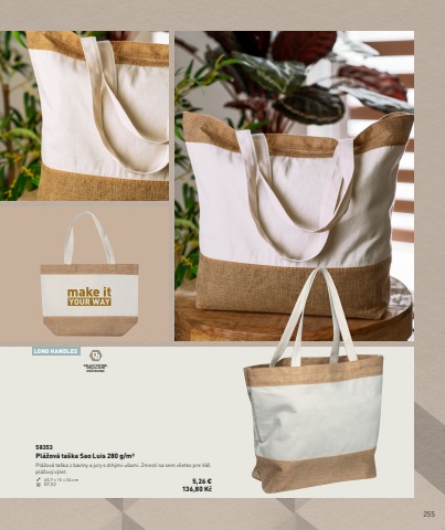 255LONG HANDLES280 g/m2 COTTON,120 g/m2 JUTE (POLYESTER) 58353Pl%u00e1%u017eov%u00e1 ta%u0161ka Sao Luis 280 g/m%u00b2Pl%u00e1%u017eov%u00e1 ta%u0161ka z bavlny a juty s dlh%u00fdmi u%u0161ami. Zmest%u00ed sa sem v%u0161etko pre V%u00e1%u0161 pl%u00e1%u017eov%u00fd v%u00fdlet.45,7 %u00d7 15 %u00d7 34 cm DT,S2 5,26 %u20ac 136,80 K%u010d