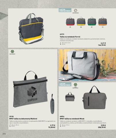 27205 08 09 10LAPTOP COMPARTMENTLAPTOP COMPARTMENT600D POLYESTERRECYCLED PET600 D RECYCLED PET68954RPET ta%u0161ka na notebook MinskTa%u0161ka na notebook vyroben%u00e1 z 600D RPET s rukov%u00e4%u0165ou na pren%u00e1%u0161anie, uzamykate%u013enou prednou priehradkou a nastavite%u013en%u00fdm ramenn%u00fdm popruhom.39 %u00d7 6 %u00d7 30 cm DT,S2 9,95 %u20ac258,70 K%u010d65173Ta%u0161ka na notebook FerrolTa%u0161ka na notebook s leskl%u00fdm farebn%u00fdm zdoben%u00edm a priestrann%u00fdm vn%u00fatrom, vreckom na such%u00fd zips.38 %u00d7 31,5 %u00d7 5 cm DT,S2 6,41 %u20ac166,70 K%u010d35130RPET ta%u0161ka na dokumenty WatfordTa%u0161ka na dokumenty vyroben%u00e1 z recyklovan%u00e9ho 300D RPET so zap%u00ednan%u00edm na zips a rukov%u00e4%u0165ou na pren%u00e1%u0161anie.39 %u00d7 5 %u00d7 28 cm DT,S2 2,77 %u20ac72,00 K%u010d