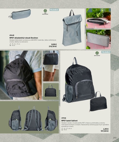273FOLDABLEFOLDABLE420DRECYCLED PETRECYCLED PET65448RPET skladate%u013en%u00fd ruksak StocktonSkladac%u00ed %u013eahk%u00fd batoh vyroben%u00fd zo 420D RPET materi%u00e1lu, %u013eahko zlo%u017eite%u013en%u00fd do vrecka, ide%u00e1lny na cestovanie.29 %u00d7 54 %u00d7 10 cm DT,S2 8,08 %u20ac 210,10 K%u010d37938RPET batoh SalfordSkladac%u00ed ruksak z recyklovan%u00e9ho PET s hlavnou priehradkou a dvoma sie%u0165ovan%u00fdmi bo%u010dn%u00fdmi vreckami. Nastavite%u013en%u00fd ramenn%u00fd popruh pre optim%u00e1lne pohodlie pri nosen%u00ed.32 %u00d7 19 %u00d7 40 cm DT,S2 6,05 %u20ac 157,30 K%u010d