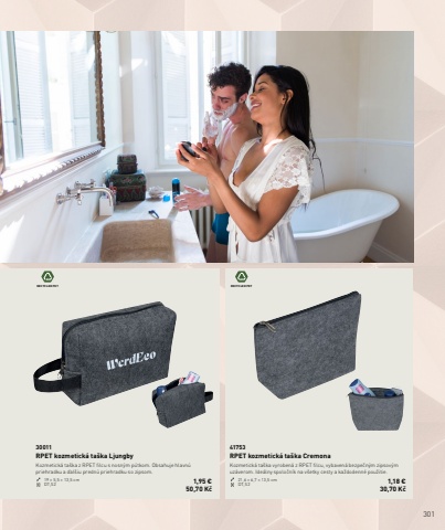 301RECYCLED PET RECYCLED PET30011RPET kozmetick%u00e1 ta%u0161ka LjungbyKozmetick%u00e1 ta%u0161ka z RPET filcu s nosn%u00fdm p%u00fatkom. Obsahuje hlavn%u00fa priehradku a %u010fal%u0161iu predn%u00fa priehradku so zipsom.19 %u00d7 5,5 %u00d7 13,5 cm DT,S2 1,95 %u20ac50,70 K%u010d41753RPET kozmetick%u00e1 ta%u0161ka CremonaKozmetick%u00e1 ta%u0161ka vyroben%u00e1 z RPET filcu, vybaven%u00e1 bezpe%u010dn%u00fdm zipsov%u00fdm uz%u00e1verom. Ide%u00e1lny spolo%u010dn%u00edk na v%u0161etky cesty a ka%u017edodenn%u00e9 pou%u017eitie.21,6 %u00d7 6,7 %u00d7 13,5 cm DT,S2 1,18 %u20ac30,70 K%u010d