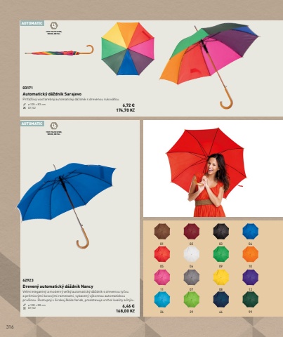 3161110120924 29 44 9901 02 03 0407060805AUTOMATIC AUTOMATIC 190T POLYESTER, WOOD, METAL190T POLYESTER, WOOD, METAL62923Dreven%u00fd automatick%u00fd d%u00e1%u017ednik NancyVe%u013emi elegantn%u00fd a modern%u00fd ve%u013ek%u00fd automatick%u00fd d%u00e1%u017ednik s drevenou ty%u010dou a pr%u00e9miov%u00fdmi kovov%u00fdmi ramenami, vybaven%u00fd v%u00fdkonnou automatickou pru%u017einou. Dostupn%u00fd v %u0161irokej %u0161k%u00e1le farieb, predstavuje vrchol kvality a %u0161t%u00fdlu.%u00f8 108 %u00d7 88 cm DT,S2 6,46 %u20ac 168,00 K%u010d03171Automatick%u00fd d%u00e1%u017ednik SarajevoPr%u00ed%u0165a%u017eliv%u00fd viacfarebn%u00fd automatick%u00fd d%u00e1%u017ednik s drevenou rukov%u00e4%u0165ou.%u00f8 105 %u00d7 83 cm DT,S2 6,72 %u20ac174,70 K%u010d