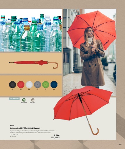 31703 05 06 07 29 44AUTOMATIC RECYCLED PET82174Automatick%u00fd RPET d%u00e1%u017ednik HasseltVysoko kvalitn%u00fd automatick%u00fd a vetruodoln%u00fd d%u00e1%u017ednik z RPET materi%u00e1lu, s kostrou zo sklenen%u00fdch vl%u00e1kien a zahnutou drevenou rukov%u00e4%u0165ou.%u00f8 105 %u00d7 88 cm DT,S2 8,54 %u20ac 222,00 K%u010dWOOD, METAL