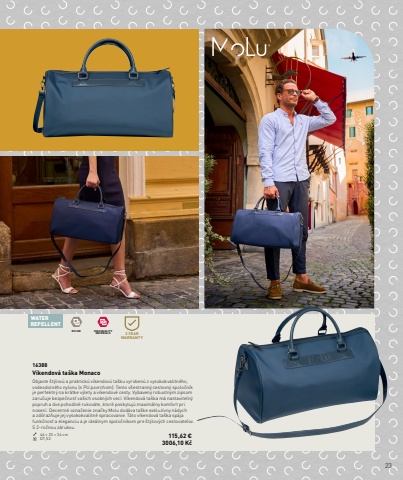 23WATERREPELLENT2 YEARWARRANTYNYLON HIGH QUALITY MATERIALS16388V%u00edkendov%u00e1 ta%u0161ka MonacoObjavte %u0161t%u00fdlov%u00fa a praktick%u00fa v%u00edkendov%u00fa ta%u0161ku vyroben%u00fa z vysokokvalitn%u00e9ho, vodeodoln%u00e9ho nylonu (s PU povrchom). Tento v%u0161estrann%u00fd cestovn%u00fd spolo%u010dn%u00edk je perfektn%u00fd na kr%u00e1tke v%u00fdlety a v%u00edkendov%u00e9 cesty. Vybaven%u00fd robustn%u00fdm zipsom zaru%u010duje bezpe%u010dnos%u0165 va%u0161ich osobn%u00fdch vec%u00ed. V%u00edkendov%u00e1 ta%u0161ka m%u00e1 nastavite%u013en%u00fd popruh a dve pohodln%u00e9 rukov%u00e4te, ktor%u00e9 poskytuj%u00fa maxim%u00e1lny komfort pri nosen%u00ed. Decentn%u00e9 ozna%u010denie zna%u010dky Molu dod%u00e1va ta%u0161ke exkluz%u00edvny n%u00e1dych a zd%u00f4raz%u0148uje jej vysokokvalitn%u00e9 spracovanie. T%u00e1to v%u00edkendov%u00e1 ta%u0161ka sp%u00e1ja funk%u010dnos%u0165 a eleganciu a je ide%u00e1lnym spolo%u010dn%u00edkom pre %u0161t%u00fdlov%u00fdch cestovate%u013eov. S 2-ro%u010dnou z%u00e1rukou.46 %u00d7 23 %u00d7 24 cm DT,S2 115,62 %u20ac3006,10 K%u010d