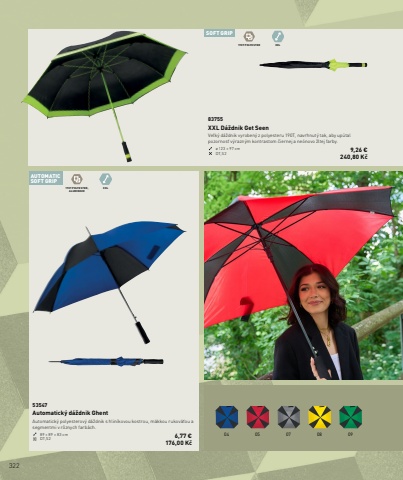 32204 05 07 08 09AUTOMATIC SOFT GRIPSOFT GRIP190T POLYESTER XXL170T POLYESTER, ALUMINIUMXXL83755XXL D%u00e1%u017ednik Get SeenVe%u013ek%u00fd d%u00e1%u017ednik vyroben%u00fd z polyesteru 190T, navrhnut%u00fd tak, aby up%u00fatal pozornos%u0165 v%u00fdrazn%u00fdm kontrastom %u010diernej a ne%u00f3novo %u017eltej farby.%u00f8 123 %u00d7 97 cm DT,S2 9,26 %u20ac240,80 K%u010d53547Automatick%u00fd d%u00e1%u017ednik GhentAutomatick%u00fd polyesterov%u00fd d%u00e1%u017ednik s hlin%u00edkovou kostrou, m%u00e4kkou rukov%u00e4%u0165ou a segmentmi v r%u00f4znych farb%u00e1ch.89 %u00d7 89 %u00d7 83 cm DT,S2 6,77 %u20ac176,00 K%u010d