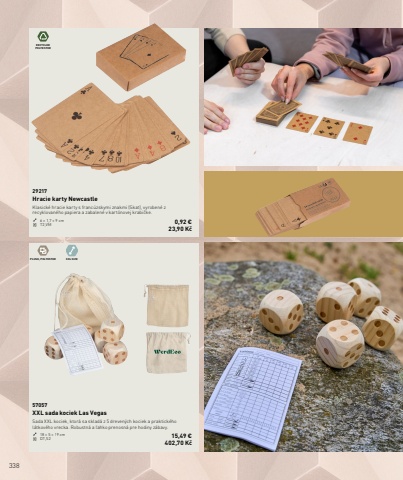 338RECYCLED POLYESTERPLUSH, POLYESTER XXL SIZE29217Hracie karty NewcastleKlasick%u00e9 hracie karty s franc%u00fazskymi znakmi (Skat), vyroben%u00e9 z recyklovan%u00e9ho papiera a zabalen%u00e9 v kart%u00f3novej krabi%u010dke.6 %u00d7 1,7 %u00d7 9 cm T2,VM 0,92 %u20ac23,90 K%u010d57057XXL sada kociek Las VegasSada XXL kociek, ktor%u00e1 sa sklad%u00e1 z 5 dreven%u00fdch kociek a praktick%u00e9ho l%u00e1tkov%u00e9ho vrecka. Robustn%u00e1 a %u013eahko prenosn%u00e1 pre hodiny z%u00e1bavy.18 %u00d7 5 %u00d7 19 cm DT,S2 15,49 %u20ac402,70 K%u010d