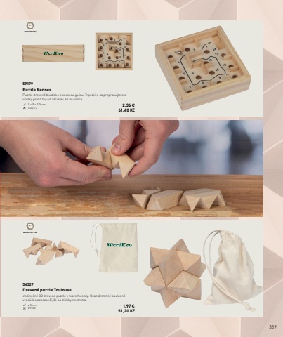 339PINE (WOOD)WOOD, COTTON59179Puzzle RennesPuzzle dreven%u00e9 bludisko s kovovou gu%u013eou. Trpezlivo sa prepracujte cez v%u0161etky prek%u00e1%u017eky od za%u010diatku a%u017e do konca.9 %u00d7 9 %u00d7 2,5 cm CG2,T2 2,36 %u20ac 61,40 K%u010d54327Dreven%u00e9 puzzle ToulouseJedine%u010dn%u00e9 3D dreven%u00e9 puzzle v tvare hviezdy. Uzatv%u00e1rate%u013en%u00e9 bavlnen%u00e9 vrec%u00fa%u0161ko zabezpe%u010d%u00ed, %u017ee sa dieliky nestratia.%u00f8 5 cm DT,S2 1,97 %u20ac51,20 K%u010d