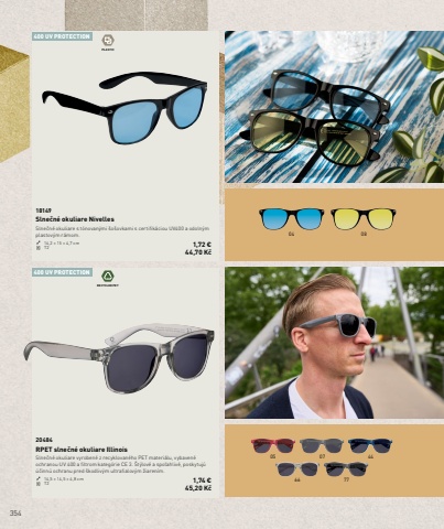 35444080777040566RECYCLED PETPLASTIC400 UV PROTECTION400 UV PROTECTION20484RPET slne%u010dn%u00e9 okuliare IllinoisSlne%u010dn%u00e9 okuliare vyroben%u00e9 z recyklovan%u00e9ho PET materi%u00e1lu, vybaven%u00e9 ochranou UV 400 a filtrom kateg%u00f3rie CE 3. %u0160t%u00fdlov%u00e9 a spo%u013eahliv%u00e9, poskytuj%u00fa %u00fa%u010dinn%u00fa ochranu pred %u0161kodliv%u00fdm ultrafialov%u00fdm %u017eiaren%u00edm.14,5 %u00d7 14,5 %u00d7 4,8 cm T2 1,74 %u20ac45,20 K%u010d18149Slne%u010dn%u00e9 okuliare NivellesSlne%u010dn%u00e9 okuliare s t%u00f3novan%u00fdmi %u0161o%u0161ovkami s certifik%u00e1ciou UV400 a odoln%u00fdm plastov%u00fdm r%u00e1mom.14,2 %u00d7 15 %u00d7 4,7 cm T2 1,72 %u20ac44,70 K%u010d