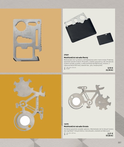 35712270Multifunk%u010dn%u00e9 n%u00e1radie OviedoPerfektn%u00fd spolo%u010dn%u00edk na ka%u017ed%u00fa cyklot%u00faru. Multin%u00e1radie m%u00e1 16 r%u00f4znych funkci%u00ed, ako napr%u00edklad 7 r%u00f4znych k%u013e%u00fa%u010dov, 3 skrutkova%u010de, otv%u00e1ra%u010de na f%u013ea%u0161e a pod.10 %u00d7 0,2 %u00d7 5,9 cm G2 2,21 %u20ac57,50 K%u010d27529Multifunk%u010dn%u00e9 n%u00e1radie RovinjMultin%u00e1radie 16v1 vyroben%u00e9 z nehrdzavej%u00facej ocele v tvare vrecka. Praktick%u00fd spolo%u010dn%u00edk m%u00e1 tieto funkcie: PU puzdro, otv%u00e1ra%u010d na konzervy, n%u00f4%u017e, skrutkova%u010d, otv%u00e1ra%u010d na f%u013ea%u0161e, prav%u00edtko, 4 imbusov%u00e9 k%u013e%u00fa%u010de (6/7/8/10 mm), uhlomer, 2 imbusov%u00e9 k%u013e%u00fa%u010de (4/5 mm), z%u00e1vesn%u00e9 oko , p%u00edla, mot%u00fd%u013eov%u00fd k%u013e%u00fa%u010d.7,8 %u00d7 5,5 %u00d7 0,3 cm G1,DT 0,92 %u20ac23,90 K%u010d