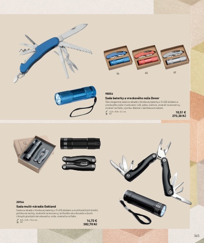 36505 07 0498056Sada baterky a vreckov%u00e9ho no%u017ea DoverT%u00e1to elegantn%u00e1 sada sa sklad%u00e1 z hlin%u00edkovej baterky s 9 LED di%u00f3dami a vreckov%u00e9ho no%u017ea s funkciami: n%u00f4%u017e, p%u00edlka, no%u017enice, otv%u00e1ra%u010d na konzervy, otv%u00e1ra%u010d na f%u013ea%u0161e, v%u00fdvrtka. Balen%u00e9 v dar%u010dekovom balen%u00ed.13,5 %u00d7 8,8 %u00d7 3,1 cm G2 10,51 %u20ac273,30 K%u010d20944Sada multi-n%u00e1radia OaklandSada sa sklad%u00e1 z hlin%u00edkovej baterky s 9 LED di%u00f3dami a multifunk%u010dn%u00fdch klie%u0161t%u00ed, piln%u00edka na nechty, otv%u00e1ra%u010da na konzervy, kr%u00ed%u017eov%u00e9ho skrutkova%u010da a dvoch r%u00f4znych ploch%u00fdch skrutkova%u010dov, no%u017ea, otv%u00e1ra%u010da na f%u013ea%u0161e.8,3 %u00d7 2,8 %u00d7 12,4 cm G2 14,72 %u20ac382,70 K%u010d