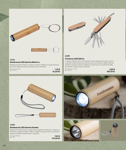 36642387Vreckov%u00fd no%u017e%u00edk Edirne11-dielny vreckov%u00fd n%u00f4%u017e z nehrdzavej%u00facej ocele obsahuj%u00faci dve p%u00edly, no%u017enice, otv%u00e1ra%u010de na f%u013ea%u0161e a konzervy, v%u00fdvrtku, piln%u00edk, skrutkova%u010d a %u010fal%u0161ie n%u00e1stroje, ulo%u017een%u00fd v drevenej rukov%u00e4ti. Ka%u017ed%u00fd kus a grav%u00edrovanie s%u00fa jedine%u010dn%u00e9 v%u010faka pr%u00edrodn%u00e9mu bambusov%u00e9mu materi%u00e1lu.9,2 %u00d7 2,3 %u00d7 1,8 cm CG2,T2 3,85 %u20ac 100,10 K%u010d42134Bambusov%u00e1 LED baterka MallorcaBambusov%u00e9 LED svietidlo s kr%u00fa%u017ekom na k%u013e%u00fa%u010de. Ka%u017ed%u00fd kus a grav%u00edrovanie je jedine%u010dn%u00e9 v%u010faka pr%u00edrodn%u00e9mu bambusov%u00e9mu materi%u00e1lu.%u00f8 1,4 %u00d7 6,5 cm CG1,T2 1,33 %u20ac34,60 K%u010d44652Bambusov%u00e1 LED baterka DundeeBambusov%u00e9 LED svietidlo s integrovanou dob%u00edjate%u013enou bat%u00e9riou s kapacitou 500 mAh a nab%u00edjac%u00edm k%u00e1blom USB-C. Ka%u017ed%u00fd kus a grav%u00edrovanie je jedine%u010dn%u00e9 v%u010faka pr%u00edrodn%u00e9mu bambusov%u00e9mu materi%u00e1lu.%u00f8 2,3 %u00d7 8,6 cm CG2 7,59 %u20ac197,30 K%u010d